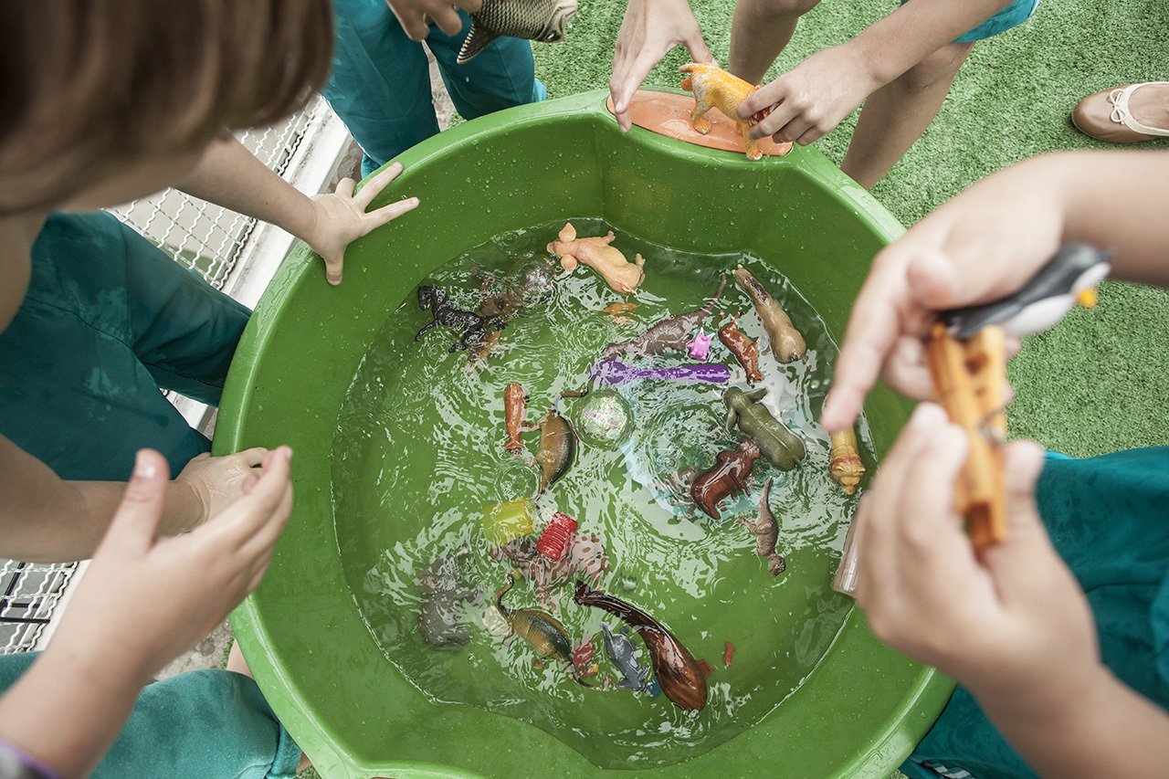 Espaço: De preferência na área externa, num dia de temperatura amena, pois os pequenos vão manipular os objetos na água.