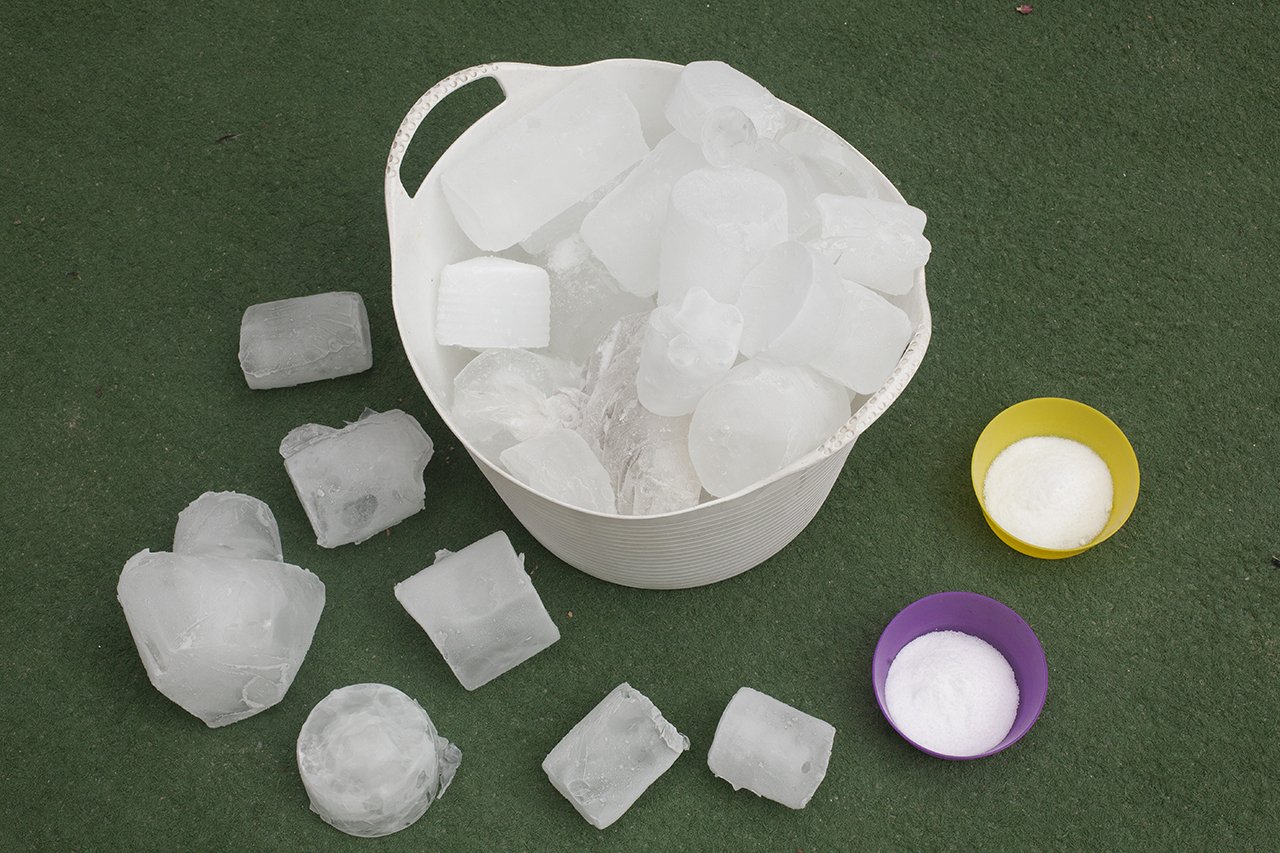 Espaço: É uma atividade realizada na área externa, de preferência em dias de calor. A grama é um suporte ideal, pois não há problema quando o gelo derreter.