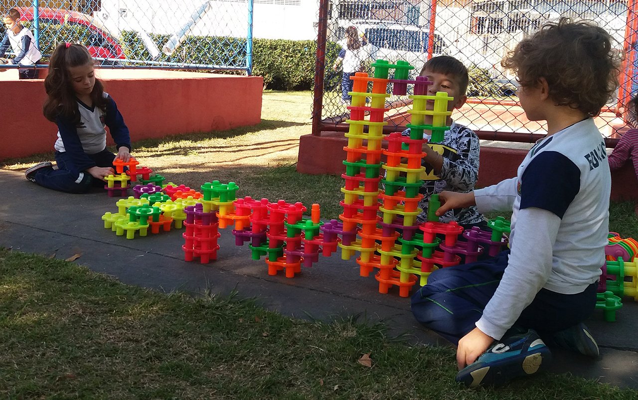 Em São Caetano do Sul (SP), a educadora Iara Félix, da EMEI Octávio Tegão, aproveitou o tempo no parquinho para promover uma atividade de exploração e construção de materiais em larga escala com a turma de crianças pequenas. “Proporcionar essa atividade para as crianças é sempre muito agradável e surpreendente. Vê-las interagindo com os objetos e atribuindo diferentes significados a eles é, no mínimo, encantador, pois revela sua criatividade e o desenvolvimento de sua apropriação cultural”, diz a professora.