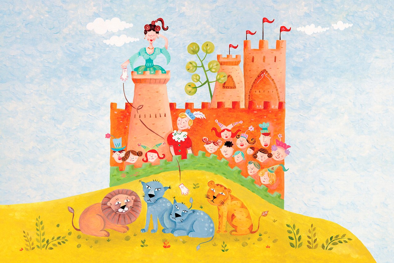 Foi nos tempos distantes do amor cortês. No reino medieval do rei Franz era dia de festa, e o ponto alto das festividades era a exibição de feras selvagens, trazidas de terras distantes, na arena do grande castelo.Em volta da arena erguiam-se as arquibancadas, encimadas por altos balcões onde brilhavam os nobres da corte, ao lado das belas damas faiscantes de jóias. Entre elas se destacava a donzela Cunegundes, tão rica e formosa quanto orgulhosa, e de pé ao seu lado estava o seu apaixonado adorador, o jovem cavaleiro Delorges, cujo amor ela desdenhava, distante e fria.