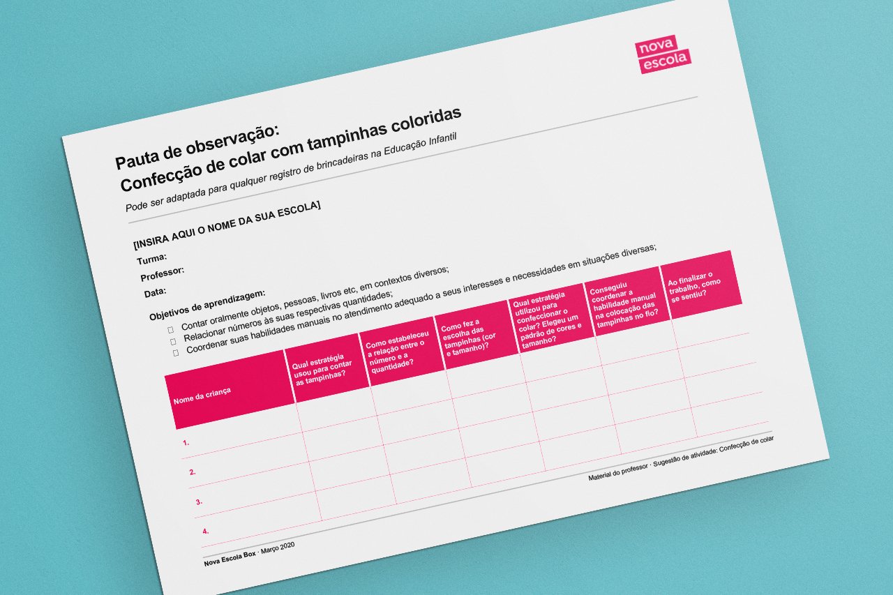 A seguir, você confere um modelo de pauta de observação com exemplos de perguntas relacionadas à atividade de confecção de colar. Você pode adaptá-lo para outras brincadeiras e atividades.