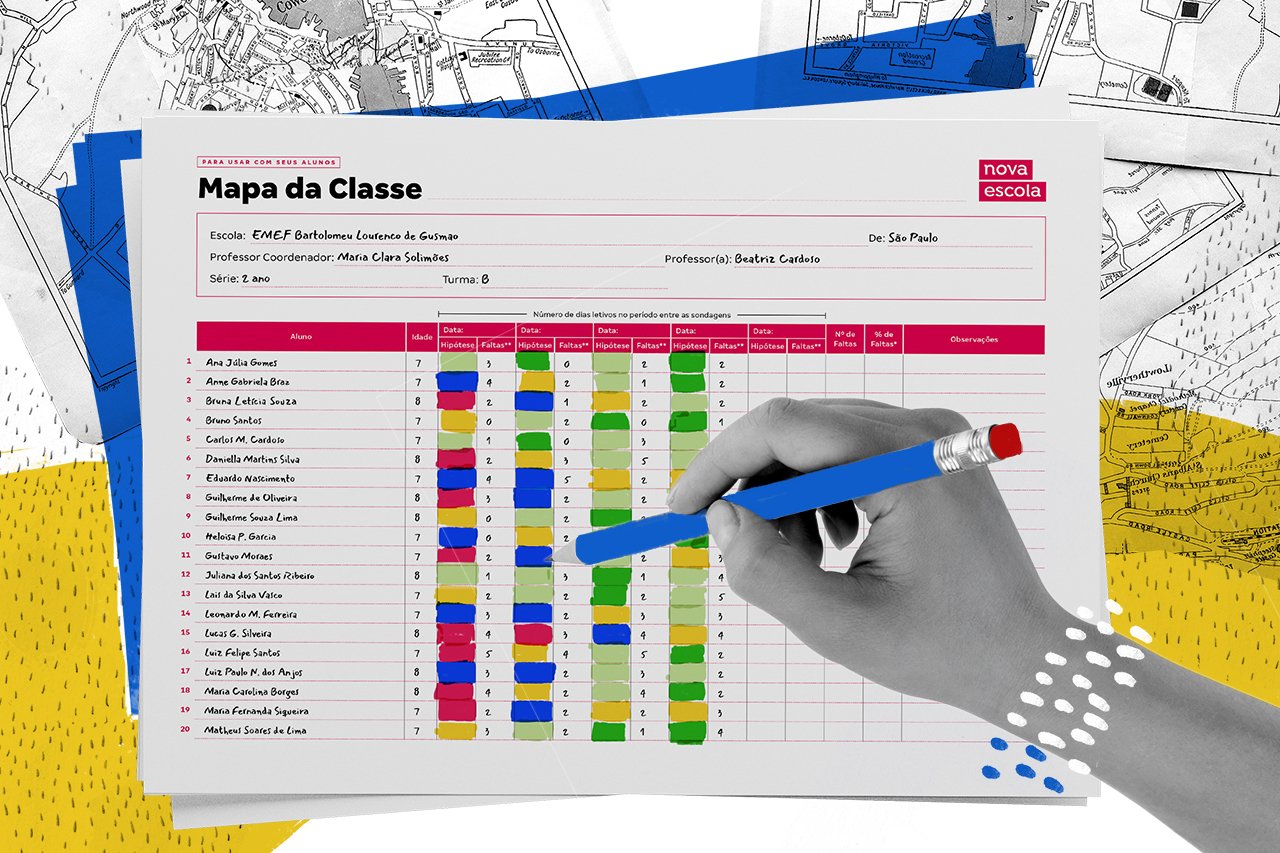 Para acompanhar o processo de alfabetização, uma das estratégias é registrar os resultados da sondagem em um mapa da classe. Esse mapa é uma tabela na qual o professor preenche a primeira coluna com o nome de cada aluno e escolhe uma cor para representar cada uma das hipóteses de escrita (algumas escolas definem um padrão a ser utilizado por todos os professores - o que pode ser útil para trocar informações com a equipe). Após cada sondagem, o educador identifica qual a hipótese predominante de cada criança - considerando que ela pode apresentar características de mais de uma hipótese - e vai pintando as colunas seguintes conforme a legenda. Dessa forma, ao olhar o mapa, ele consegue perceber a evolução individual e da turma.