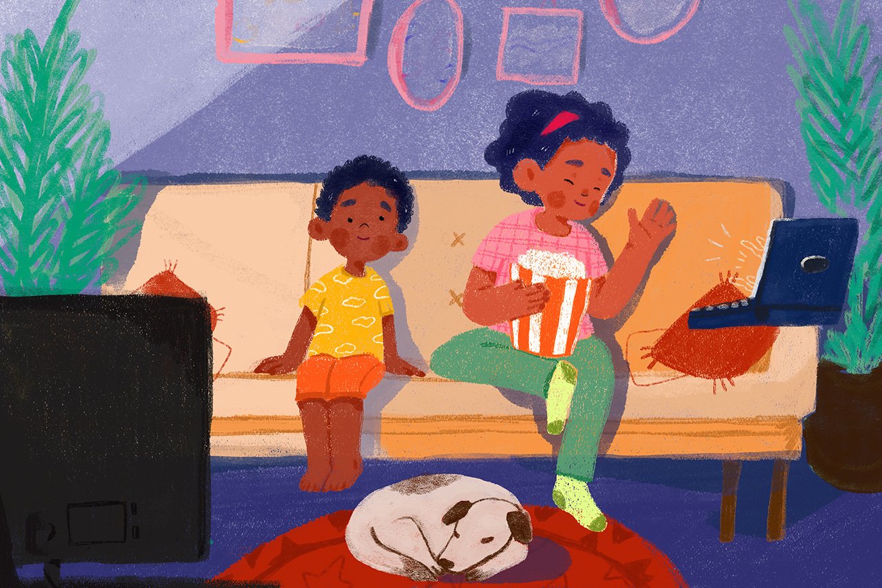 Para aliviar o distanciamento social, você pode propor que os alunos se juntem online em grupos para assistir a filmes e séries em conjunto. A atividade pode ajudar a reforçar um senso de propósito e conexão entre as crianças. O conteúdo assistido torna-se um objeto de discussão com orientação do professor. Faça uma seleção de quais filmes, séries e vídeos os alunos poderão escolher e mapeie as questões que podem suscitar discussões.
