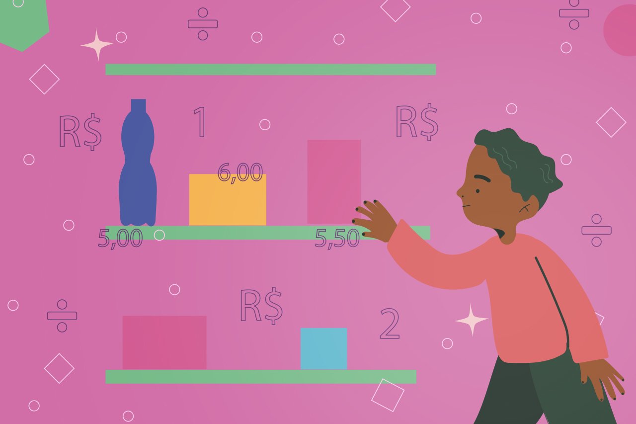 PONTO DE ATENÇÃO: A exploração de uma situação cotidiana real, com a pesquisa de preços na Internet ou com os adultos, por exemplo, é mais interessante para os alunos. No entanto, você pode aproveitar uma situação hipotética envolvendo a análise de grandezas não proporcionais em garrafas de refrigerante no Plano de Aula original clicando aqui. Confira também a resolução da atividade e o guia de intervenções.