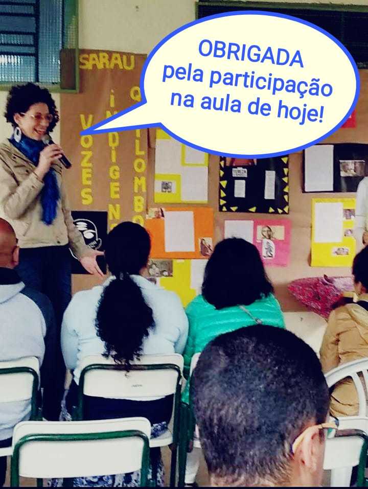 9. Ao final de qualquer atividade, sempre agradeça a companhia dos alunos, valorize o tempo e o trabalho deles. Veja, abaixo, um exemplo feito pela professora:
