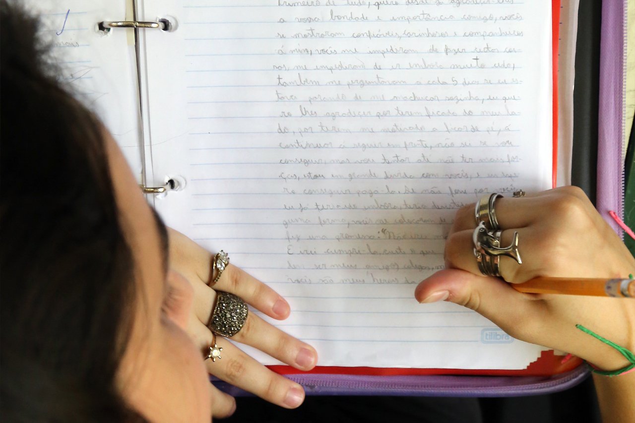 Nas turmas do 6º ano de Dayane Martins, não bastava escrever uma vez só. Durante o projeto desenvolvido pela educadora na EE Professora Judith Ferreira Piva, em Ribeirão Pires (SP), os alunos puderam experimentar a vida de quem trabalha com as letras e refinar a fábula escrita inicialmente.
