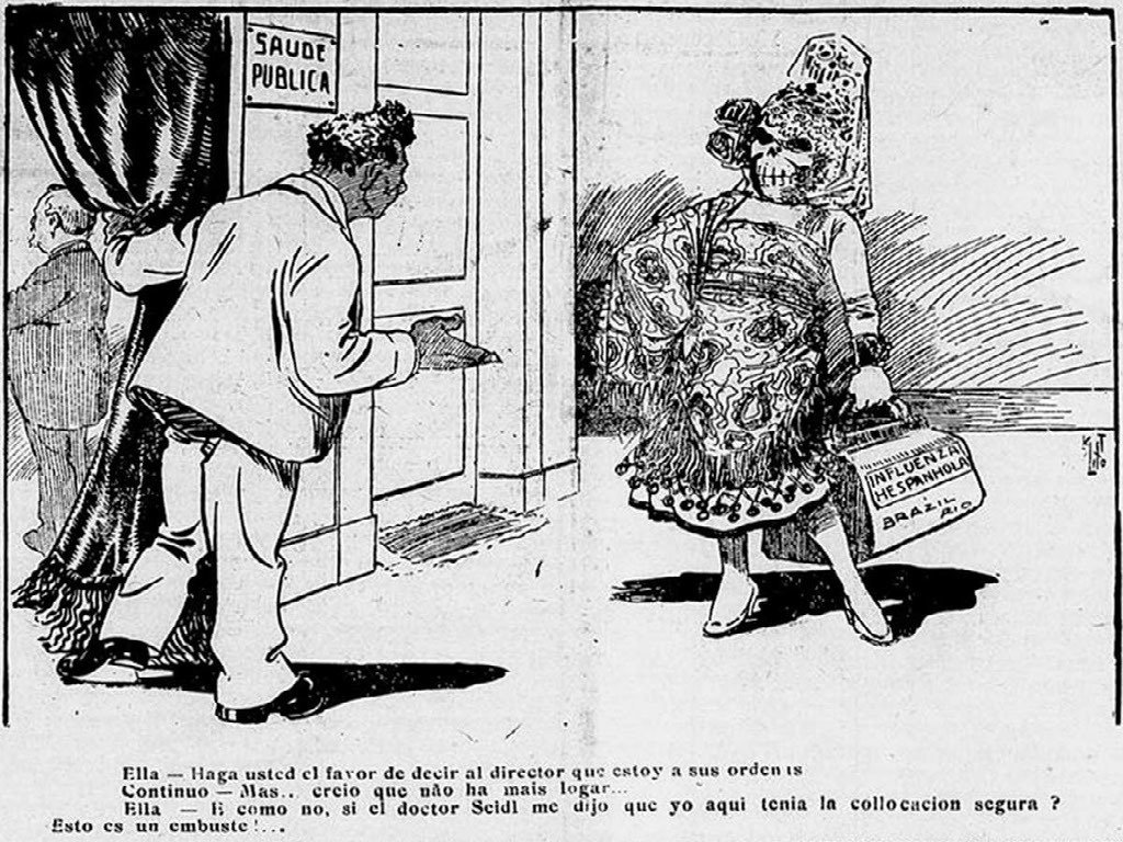 Trazido por navios estrangeiros que atuavam direta ou indiretamente na Primeira Guerra Mundial, o H1N1 chegou à costa brasileira em 1918. Disseminou-se pelo interior do país a partir das ferrovias que conectavam mercadorias, como o café, ao restante do mundo. Em pouco tempo, fez milhares de vítimas, entre eles, o presidente eleito naquele ano, Rodrigues Alves.